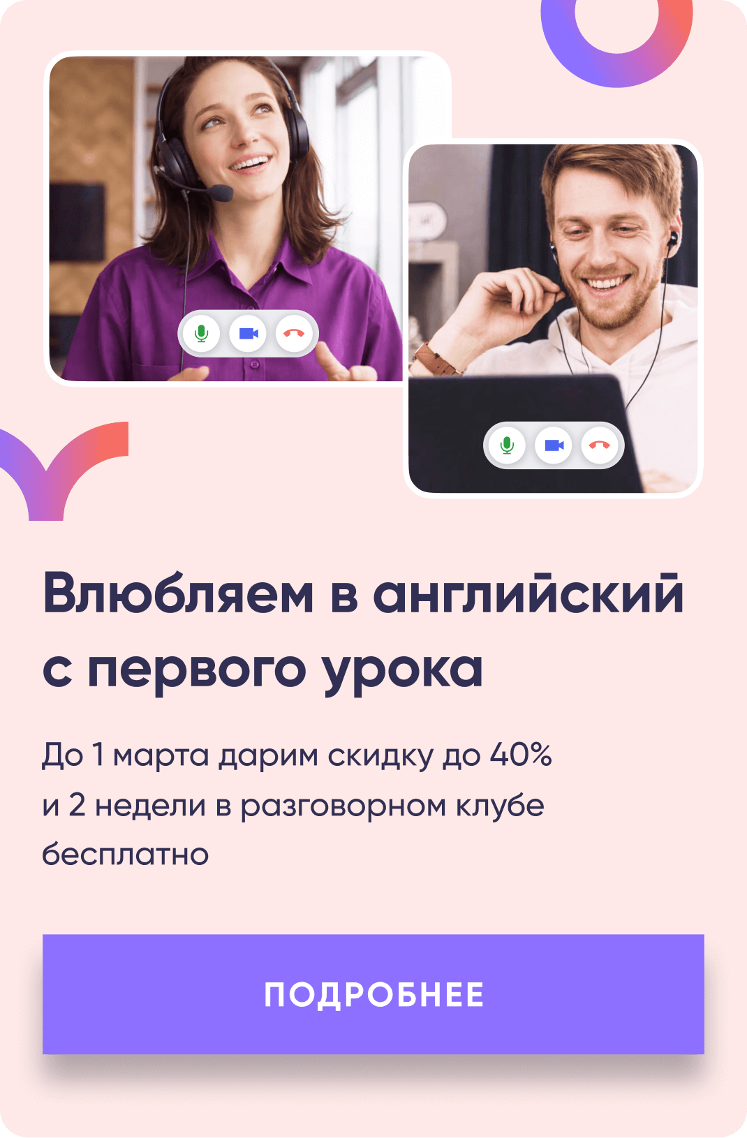 При оплате курса целиком вы получаете скидку 40% и бонусы: регулярные встречи с методистом-наставником и бесплатный доступ в разговорный клуб Skills для дополнительной практики общения. Можно оплатить курс частями: через рассрочку от банков-партнеров или внутреннюю программу школы — без процентов и переплат.